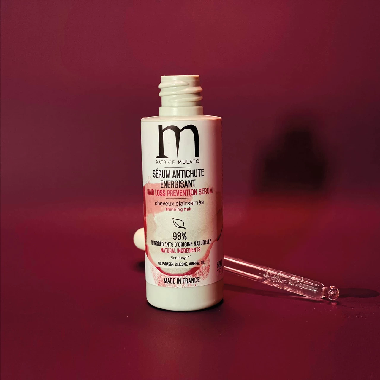 Le Sérum Anti-chute Energisant Mulato est formulé à base de Rédensyl 3%, un actif breveté et reconnu pour stimuler la croissance du cheveu et ralentir sa chute.