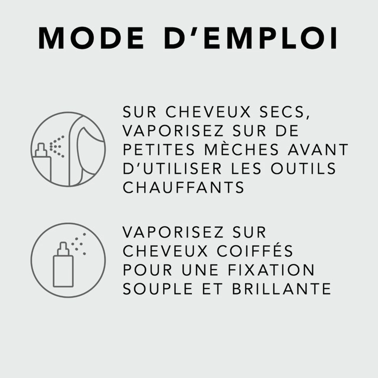 – Vaporisez sur des petites sections avant d’utiliser un sèche-cheveux ou un fer à lisser